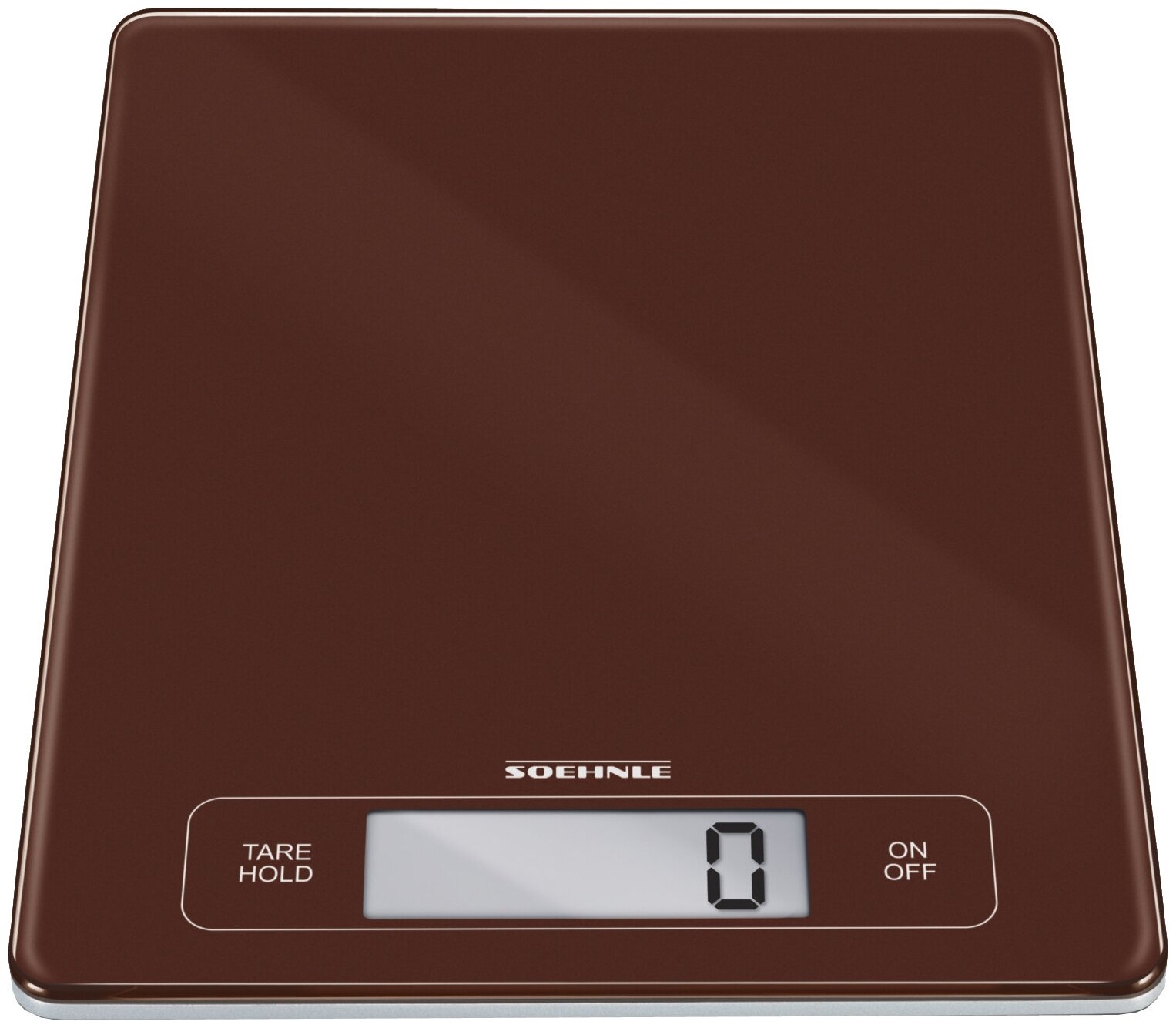 Touch buttons; the HOLD button maintains the weight value on the display, even if the product being weighed is removed from the scales; colors: black, silver, coffee