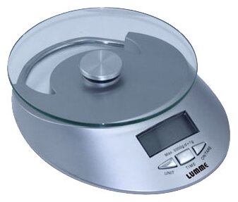 Type: electronic, design: platform, weighing limit: 5 kg, measurement accuracy: 1 g, additional functions: automatic shutdown, tare compensation, clock, indication: battery charge, overload
