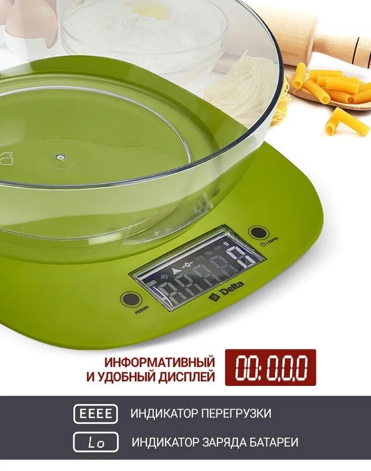 Type: electronic, design: platform, weighing limit: 8 kg, measurement accuracy: 1 g, additional functions: automatic shutdown, liquid volume measurement, tare compensation, indication: battery charge, switch