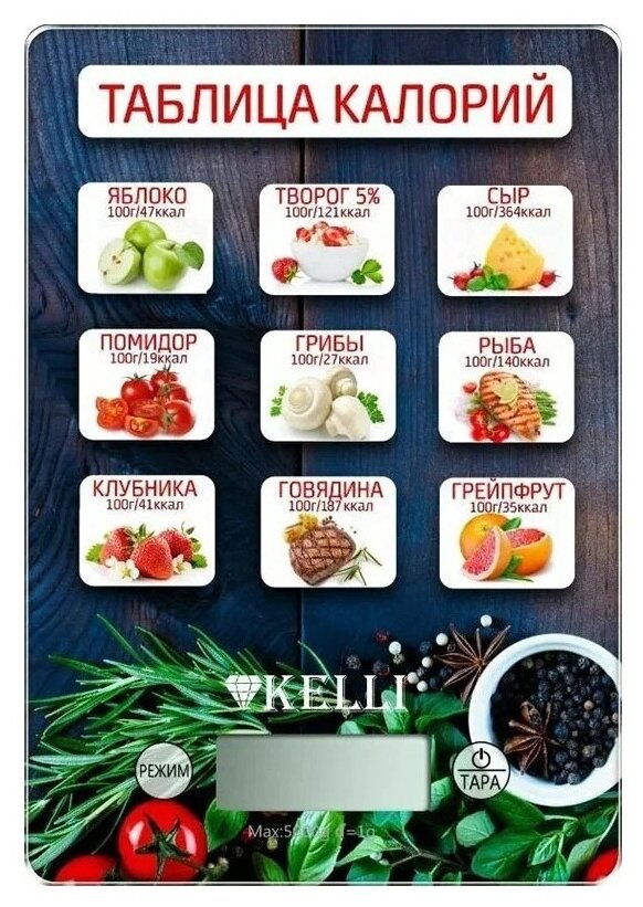 Type: electronic, design: platform, weighing limit: 8 kg, measurement accuracy: 1 g, additional functions: automatic shutdown, liquid volume measurement, tare compensation, indication: battery charge, switch