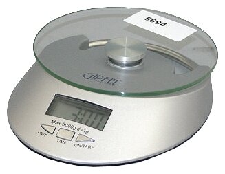 Type: electronic, design: platform, weighing limit: 5 kg, measurement accuracy: 1 g, additional functions: tare compensation, clock