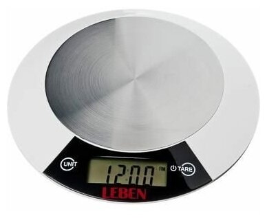Type: electronic, design: platform, weighing limit: 5 kg, measurement accuracy: 1 g, additional functions: automatic shutdown, timer, tare compensation, clock, indication: battery charge, overload