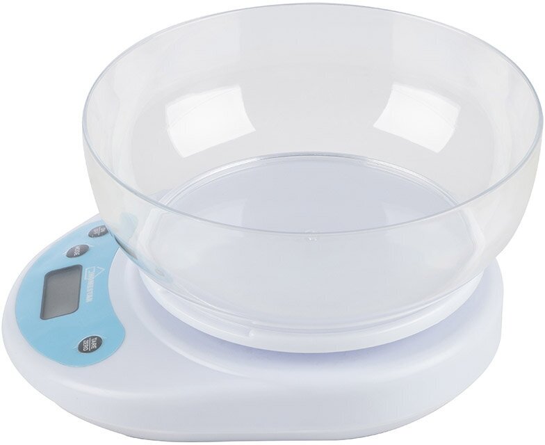 Type: electronic, design: bowl, weighing limit: 5 kg, measurement accuracy: 1 g, additional functions: automatic shutdown, tare compensation, design features: removable platform/bowl