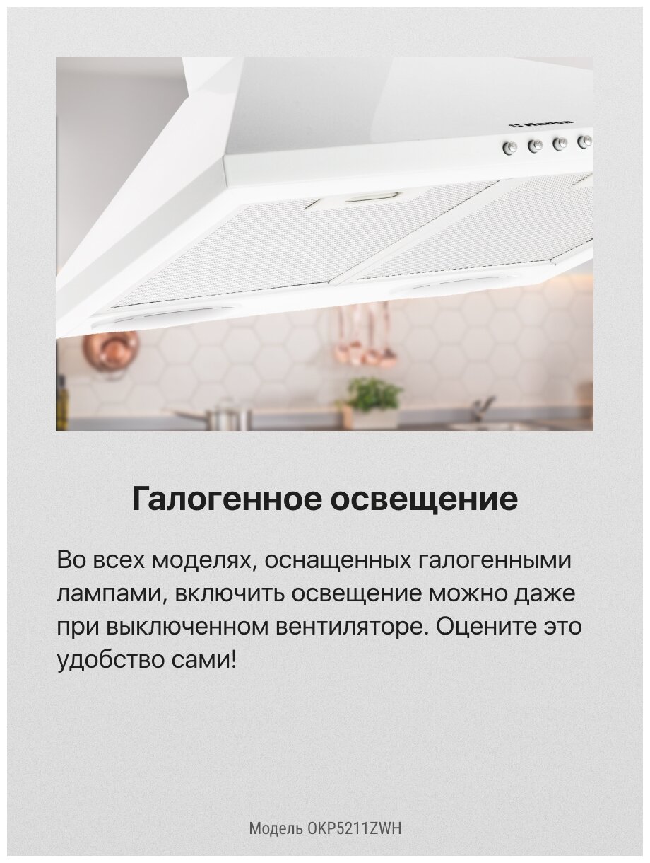 Form factor: dome, width: 50 cm, depth: 49 cm, operating modes: exhaust / circulation, maximum productivity: 490 m³/hour, installation type: wall-mounted, filter: grease, control type: mechanical, lighting type: laminated