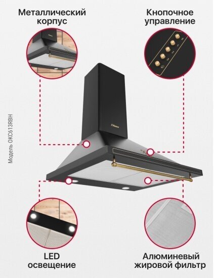Form factor: dome, operating modes: exhaust / circulation, maximum productivity: 500 m³/hour, installation type: wall-mounted, lighting type: halogen lamp, installation width: 90 cm, additional functions: intensive