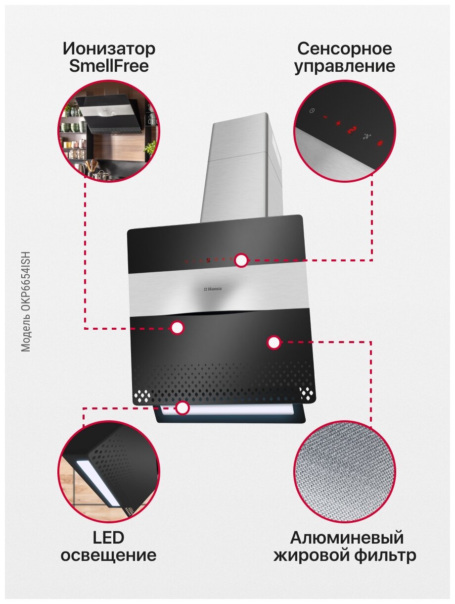 Form factor: inclined, width: 60 cm, depth: 49 cm, operating modes: exhaust / circulation, maximum productivity: 750 m³/hour, installation type: wall-mounted, filter: grease, control type: electronic, lighting type: light