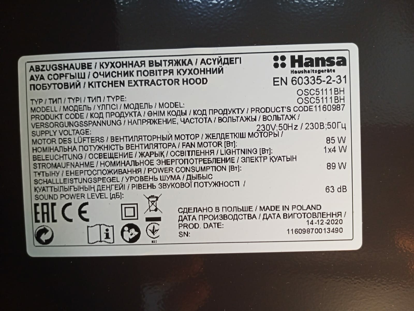 Form factor: flat, width: 50 cm, depth: 47 cm, operating modes: exhaust / circulation, maximum productivity: 158 m³/hour, installation type: wall-mounted, filter: grease, control type: mechanical, lighting type: halogen
