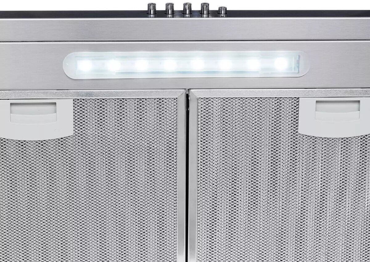 Form factor: dome, width: 60 cm, depth: 40 cm, operating modes: exhaust / circulation, maximum productivity: 750 m³/hour, installation type: wall-mounted, filter: grease, control type: mechanical, lighting type: laminated