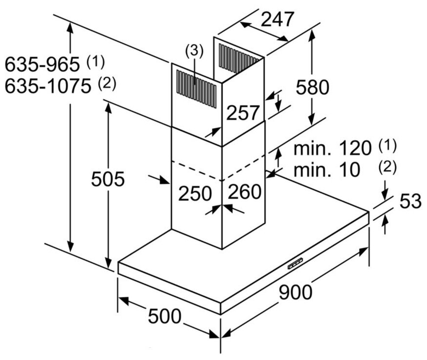 Form factor: dome, operating modes: exhaust / circulation, maximum productivity: 500 m³/hour, installation type: wall-mounted, lighting type: halogen lamp, installation width: 90 cm, additional functions: intensive