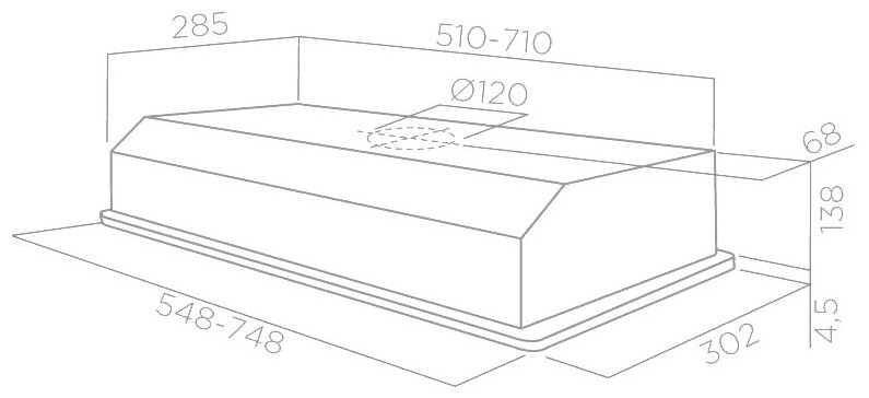 Form factor: dome, operating modes: exhaust / circulation, maximum productivity: 500 m³/hour, installation type: wall-mounted, lighting type: halogen lamp, installation width: 90 cm, additional functions: intensive