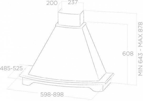 Form factor: dome, width: 60 cm, depth: 53 cm, operating modes: exhaust / circulation, maximum productivity: 650 m³/hour, installation type: wall-mounted, filter: grease, control type: mechanical, lighting type: gal