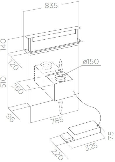 Form factor: built-in, width: 90 cm, depth: 12 cm, operating modes: drain / circulation, installation location: in the table, maximum productivity: 1200 m³/hour, filter: grease, control type: electronic, lighting type: n