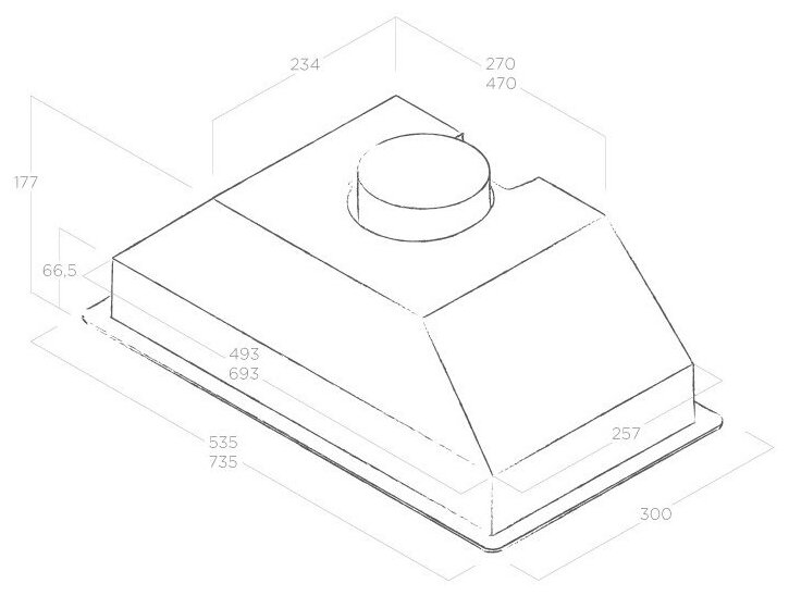 Form factor: built-in, width: 73.50 cm, depth: 30 cm, operating modes: outlet, installation location: in a cabinet, maximum productivity: 700 m³/hour, filter: grease, lighting type: LED, maximum noise level: