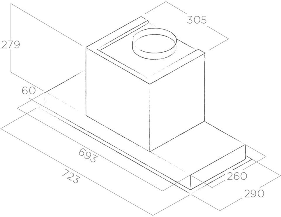Description: Form factor: built-in, width: 72.30 cm, depth: 29 cm, operating modes: drain / circulation, installation location: in a cabinet, maximum productivity: 1300 m³/hour, filter: grease, control type: electronic, lighting type: