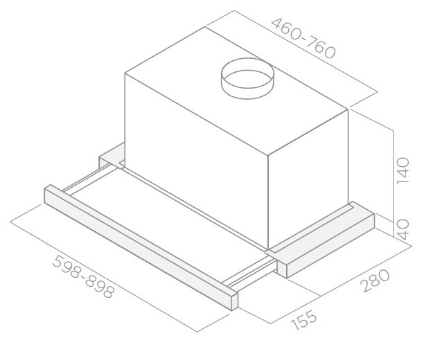 Form factor: built-in, width: 60 cm, depth: 28 cm, operating modes: drain / circulation, installation location: in a cabinet, maximum productivity: 1000 m³/hour, filter: grease, control type: mechanical, lighting type: