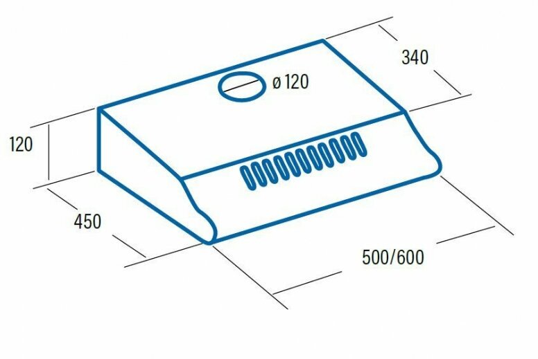 Form factor: flat, width: 60 cm, depth: 50 cm, operating modes: outlet, maximum productivity: 320 m³/hour, lighting type: incandescent, maximum noise level: 45 dB, installation width: 60 cm, consumption m