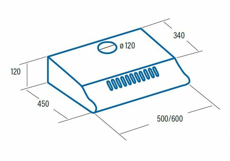 Form factor: dome, operating modes: exhaust / circulation, maximum productivity: 500 m³/hour, installation type: wall-mounted, lighting type: halogen lamp, installation width: 90 cm, additional functions: intensive