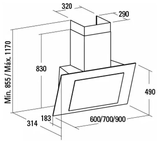 Form factor: inclined, width: 60 cm, operating modes: exhaust / circulation, maximum productivity: 1200 m³/hour, installation type: wall-mounted, filter: grease, control type: electronic, lighting type: LED, wide