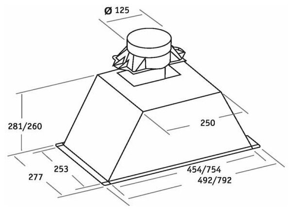 Form factor: built-in, width: 49.20 cm, depth: 27.70 cm, operating modes: drain / circulation, installation location: in a cabinet, maximum productivity: 1115 m³/hour, filter: grease, control type: mechanical, type illuminated