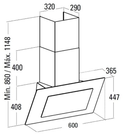 Form factor: inclined, width: 60 cm, depth: 36.50 cm, operating modes: exhaust / circulation, maximum productivity: 1200 m³/hour, installation type: wall-mounted, filter: grease, control type: electronic, lighting type: LED