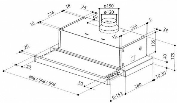 Form factor: dome, operating modes: exhaust / circulation, maximum productivity: 500 m³/hour, installation type: wall-mounted, lighting type: halogen lamp, installation width: 90 cm, additional functions: intensive