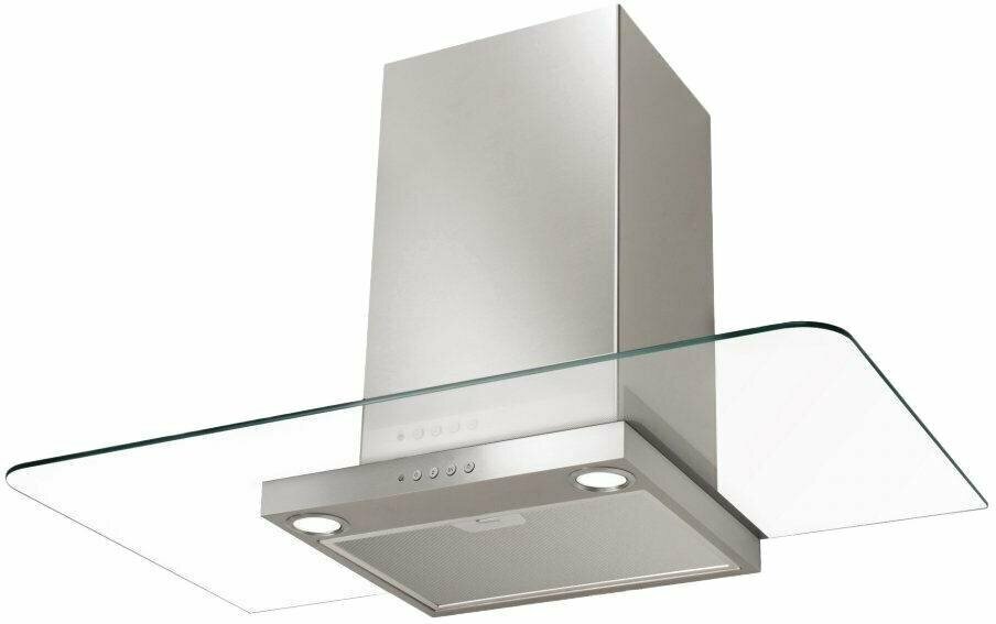 Form factor: T-shaped, width: 90 cm, operating modes: exhaust / circulation, maximum productivity: 410 m³/hour, filter: grease, control type: electronic, lighting type: halogen lamp, maximum noise level