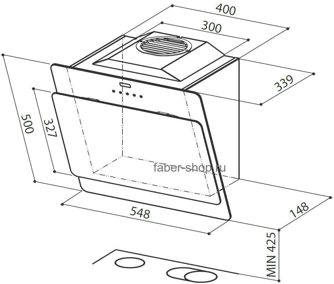 Form factor: dome, operating modes: exhaust / circulation, maximum productivity: 500 m³/hour, installation type: wall-mounted, lighting type: halogen lamp, installation width: 90 cm, additional functions: intensive