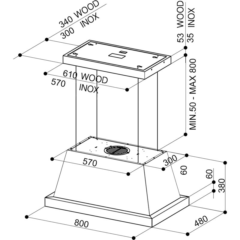 Form factor: dome, operating modes: exhaust / circulation, maximum productivity: 500 m³/hour, installation type: wall-mounted, lighting type: halogen lamp, installation width: 90 cm, additional functions: intensive