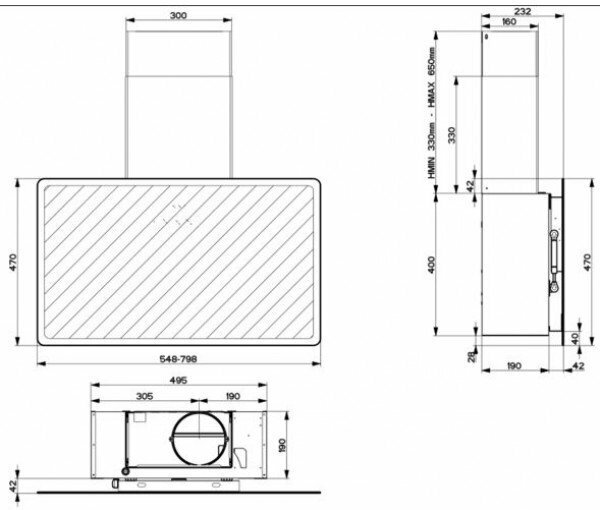 Form factor: dome, operating modes: exhaust / circulation, maximum productivity: 500 m³/hour, installation type: wall-mounted, lighting type: halogen lamp, installation width: 90 cm, additional functions: intensive