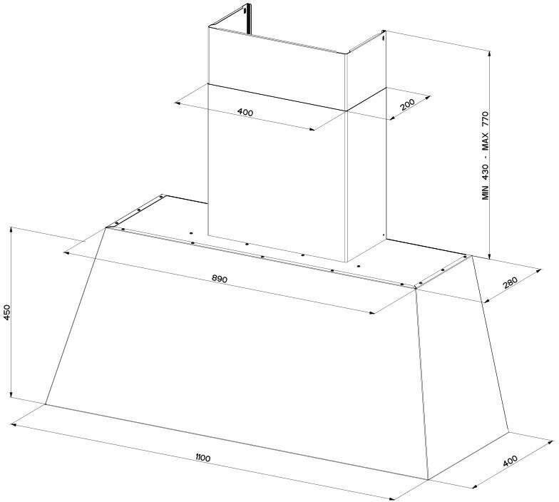 Form factor: dome, operating modes: exhaust / circulation, maximum productivity: 500 m³/hour, installation type: wall-mounted, lighting type: halogen lamp, installation width: 90 cm, additional functions: intensive