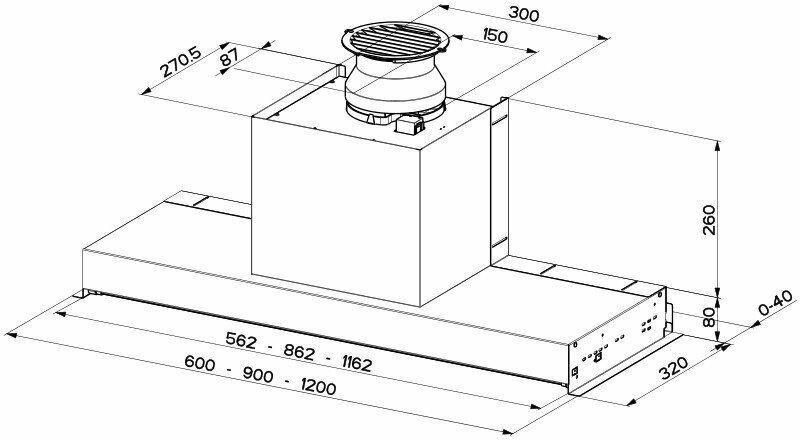 Form factor: dome, operating modes: exhaust / circulation, maximum productivity: 500 m³/hour, installation type: wall-mounted, lighting type: halogen lamp, installation width: 90 cm, additional functions: intensive