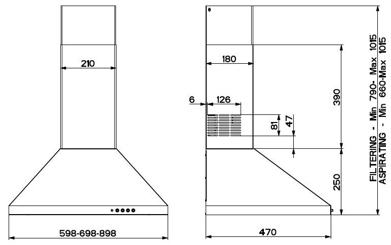 Form factor: dome, operating modes: exhaust / circulation, maximum productivity: 500 m³/hour, installation type: wall-mounted, lighting type: halogen lamp, installation width: 90 cm, additional functions: intensive
