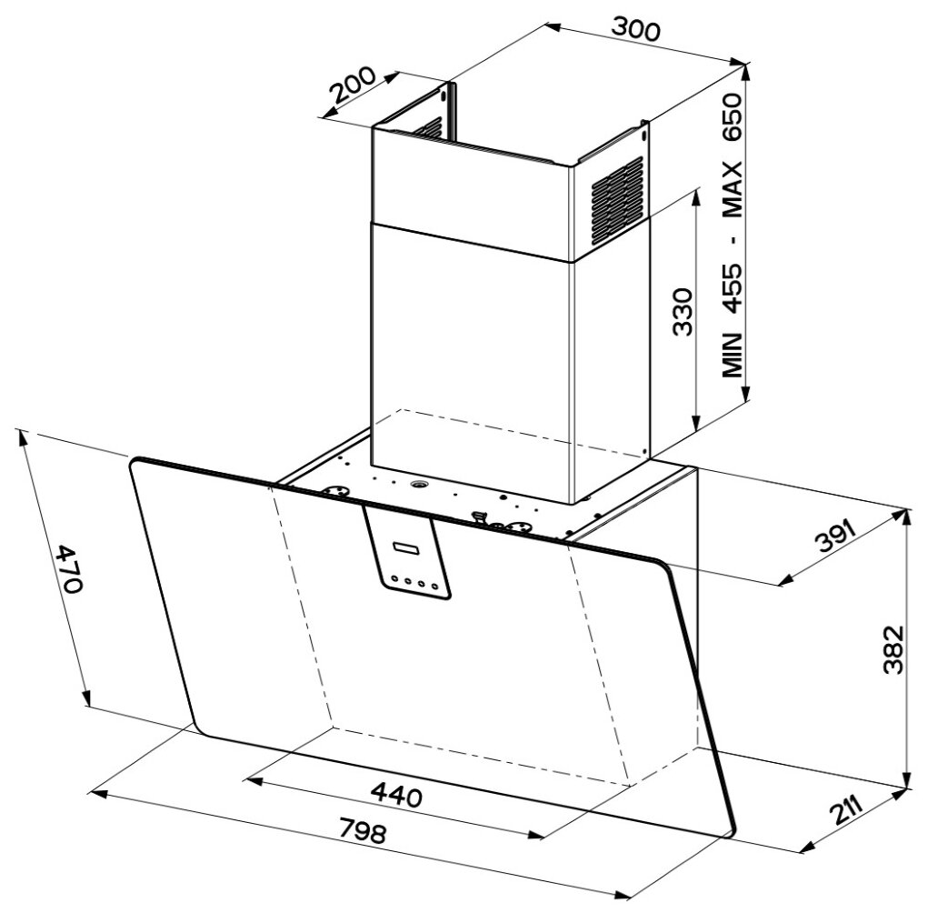 Form factor: dome, operating modes: exhaust / circulation, maximum productivity: 500 m³/hour, installation type: wall-mounted, lighting type: halogen lamp, installation width: 90 cm, additional functions: intensive
