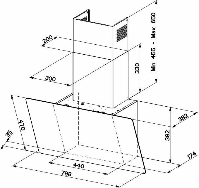 Form factor: dome, operating modes: exhaust / circulation, maximum productivity: 500 m³/hour, installation type: wall-mounted, lighting type: halogen lamp, installation width: 90 cm, additional functions: intensive