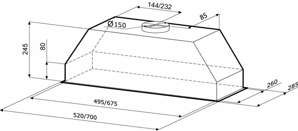 Form factor: built-in, width: 60 cm, depth: 28.50 cm, operating modes: drain / circulation, installation location: in a cabinet, maximum productivity: 650 m³/hour, filter: grease, control type: electronic, lighting type: