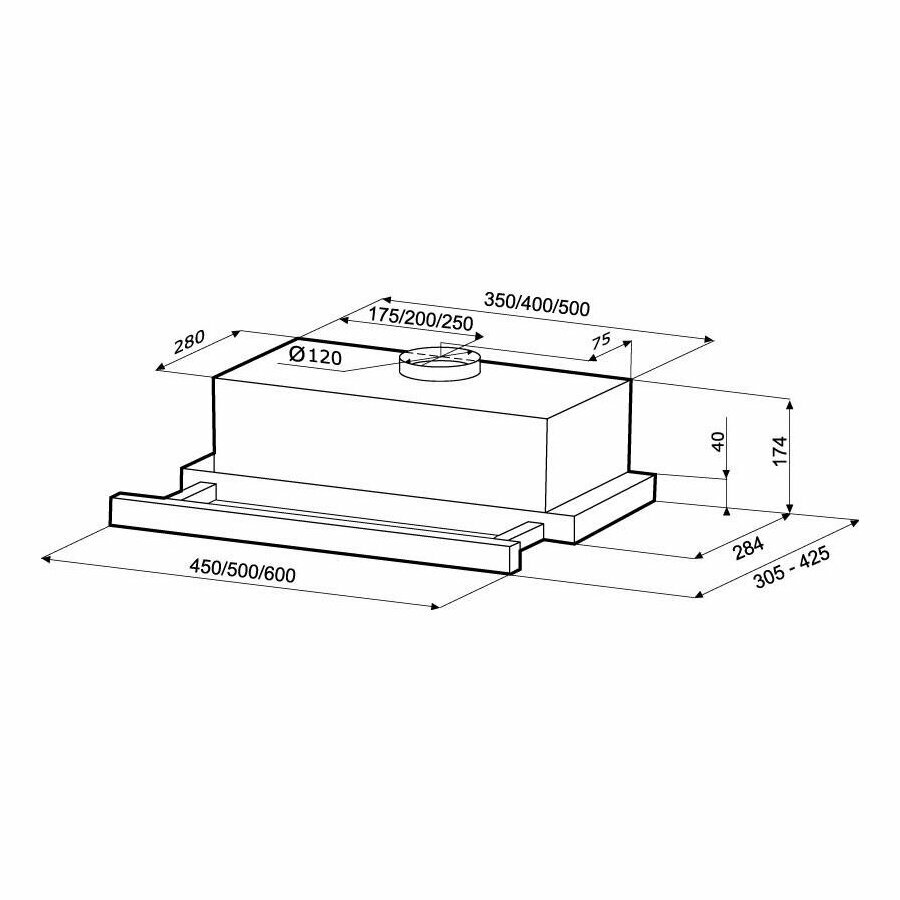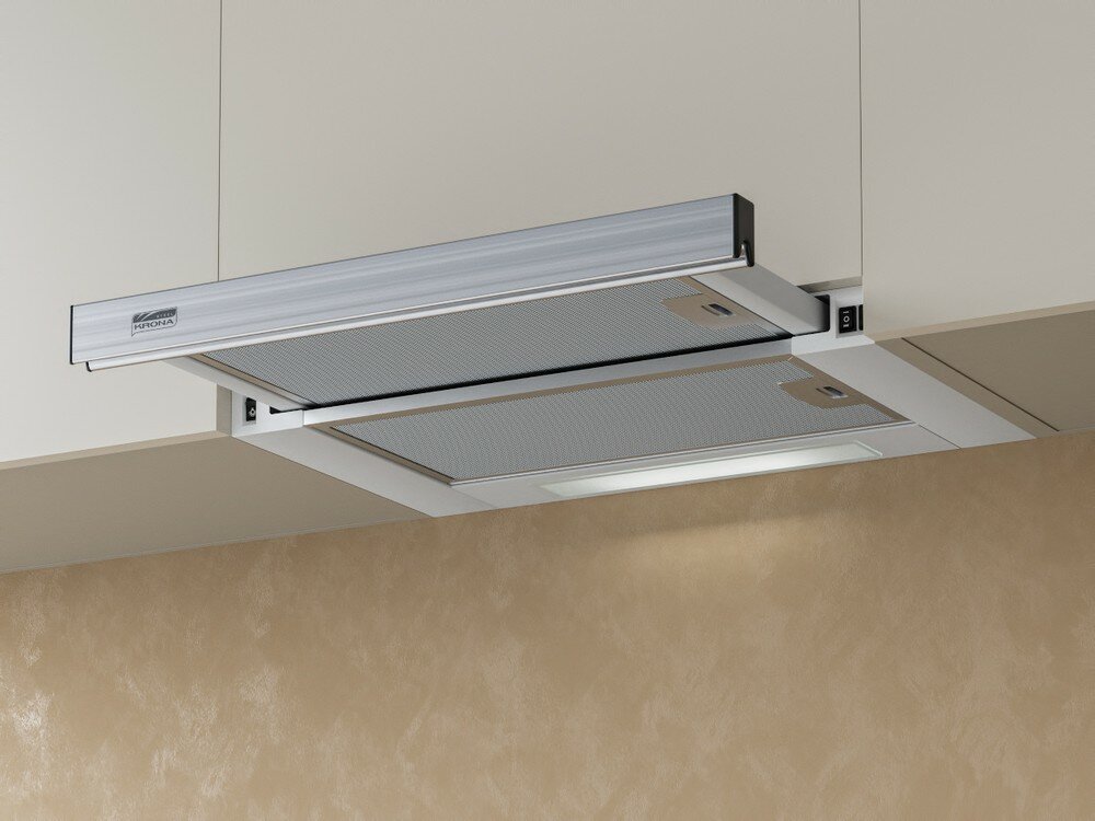 Description: Form factor: built-in, width: 50 cm, depth: 42.50 cm, operating modes: drain / circulation, installation location: in a cabinet, maximum productivity: 390 m³/hour, filter: grease, control type: mechanical, lighting type