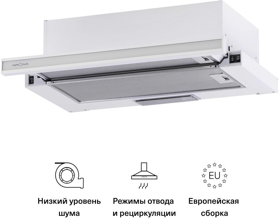 Productivity free output 1066 m3/h; installation height above electric hobs 50 cm; installation height above gas hobs 65 cm; carbon filter must be purchased separately KU-2 2 w