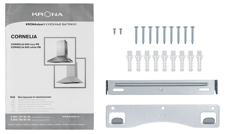 Form factor: dome, width: 60 cm, depth: 48.30 cm, operating modes: exhaust / circulation, maximum productivity: 500 m³/hour, installation type: wall-mounted, filter: grease + carbon, control type: mechanical, OS type