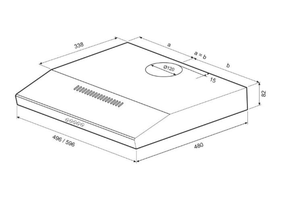 Description: Form factor: flat, width: 49.60 cm, depth: 48 cm, operating modes: drain / circulation, maximum productivity: 350 m³/hour, installation type: wall-mounted, filter: grease + carbon, control type: mechanical, lighting type