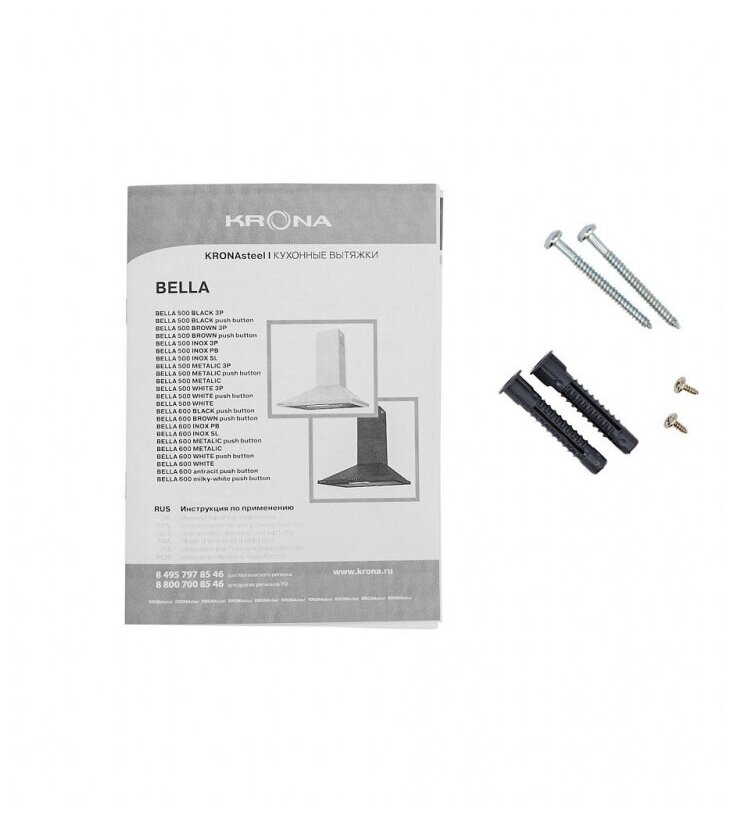 Width: 50 cm, operating modes: exhaust / circulation, maximum productivity: 550 m³/hour, installation type: wall-mounted, control type: mechanical, lighting type: halogen lamp, maximum noise level: 56 dB, diameter