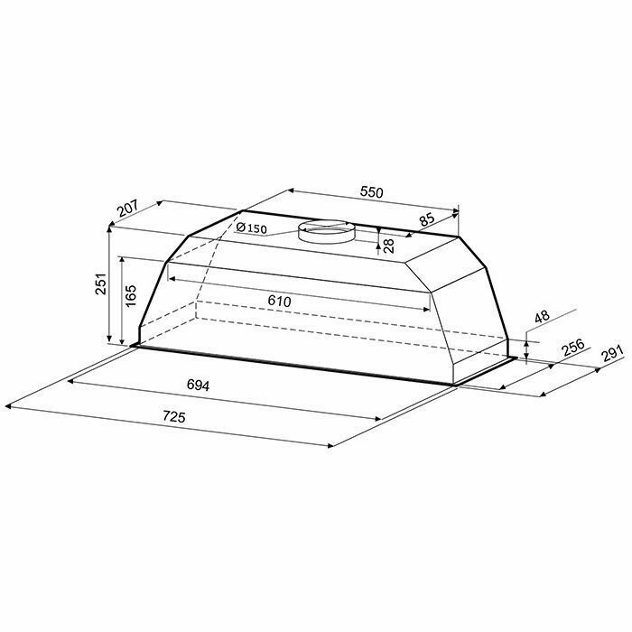 Form factor: built-in, width: 72.50 cm, depth: 29.10 cm, operating modes: exhaust / circulation, installation location: in a cabinet, maximum productivity: 1000 m³/hour, filter: grease, control type: electronic, lighting type