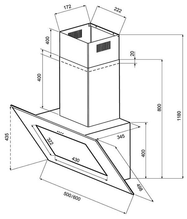 Form factor: dome, operating modes: exhaust / circulation, maximum productivity: 500 m³/hour, installation type: wall-mounted, lighting type: halogen lamp, installation width: 90 cm, additional functions: intensive