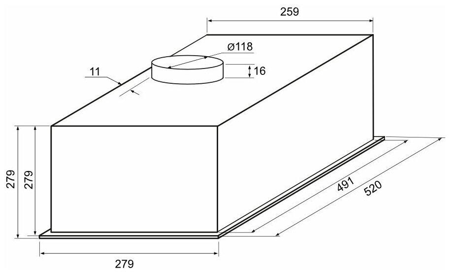 Form factor: built-in, width: 52 cm, depth: 27.90 cm, operating modes: drain / circulation, installation location: in a cabinet, maximum productivity: 710 m³/hour, installation type: wall-mounted, filter: grease, control type: m
