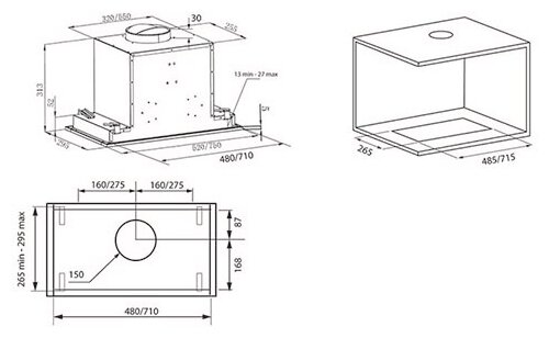 Form factor: built-in, width: 90 cm, depth: 29.50 cm, operating modes: exhaust / circulation, maximum productivity: 1000 m³/hour, filter: grease + carbon, control type: electronic, lighting type: LED, m