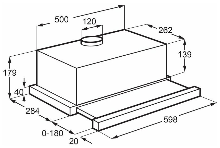 Form factor: dome, operating modes: exhaust / circulation, maximum productivity: 500 m³/hour, installation type: wall-mounted, lighting type: halogen lamp, installation width: 90 cm, additional functions: intensive