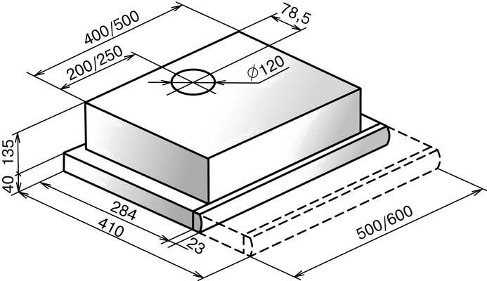 Form factor: built-in, width: 60 cm, depth: 30.70 cm, operating modes: drain / circulation, installation location: in a cabinet, maximum productivity: 400 m³/hour, filter: grease, control type: mechanical, lighting type