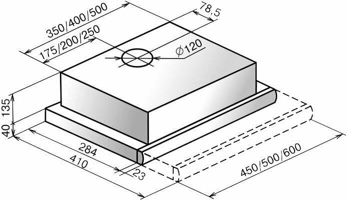 Form factor: dome, operating modes: exhaust / circulation, maximum productivity: 500 m³/hour, installation type: wall-mounted, lighting type: halogen lamp, installation width: 90 cm, additional functions: intensive