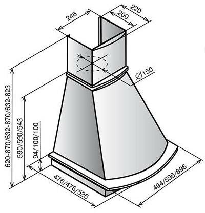 Form factor: dome, operating modes: exhaust / circulation, filter: grease, lighting type: incandescent