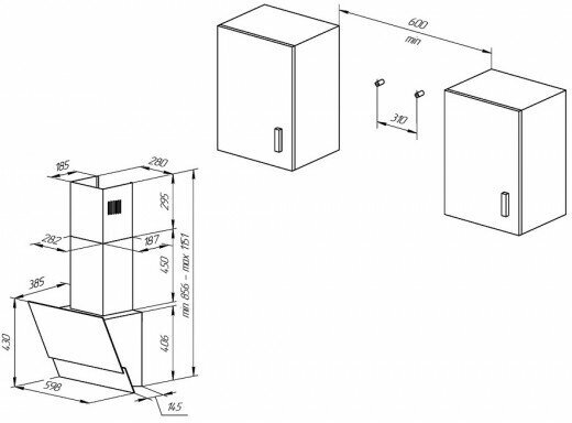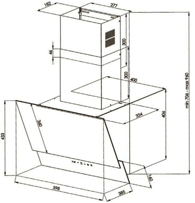 Form factor: inclined, width: 59.80 cm, depth: 38.50 cm, operating modes: exhaust / circulation, maximum productivity: 1300 m³/hour, filter: grease, control type: electronic, lighting type: LED, maximum