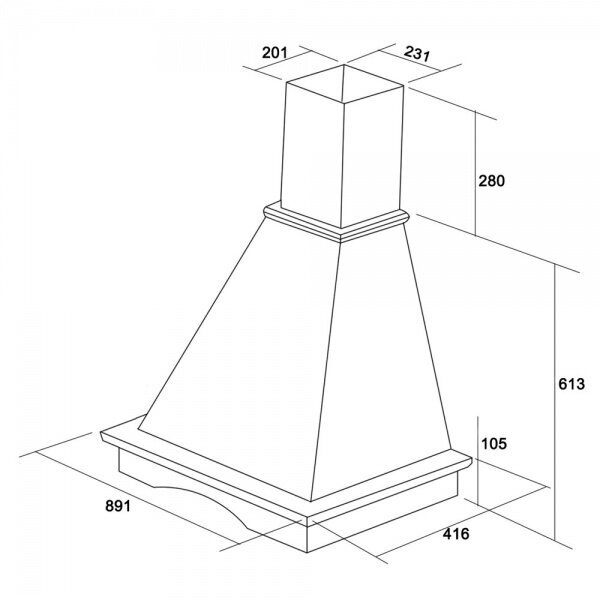Form factor: dome, width: 89.10 cm, depth: 46.10 cm, operating modes: exhaust / circulation, maximum productivity: 650 m³/hour, installation type: wall-mounted, filter: grease, control type: mechanical, lighting type: